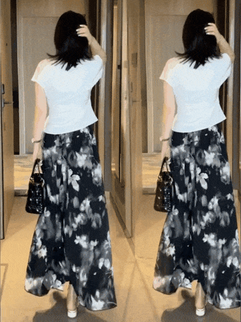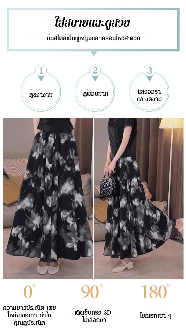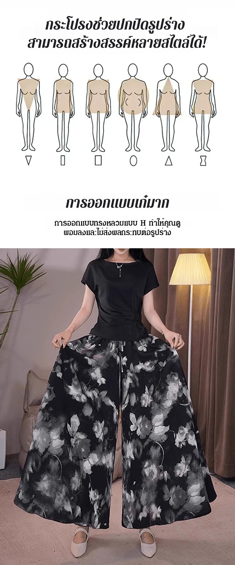 กางเกงกระโปรงผ้าไหมเย็นเอวสูงลำลองของผู้หญิง