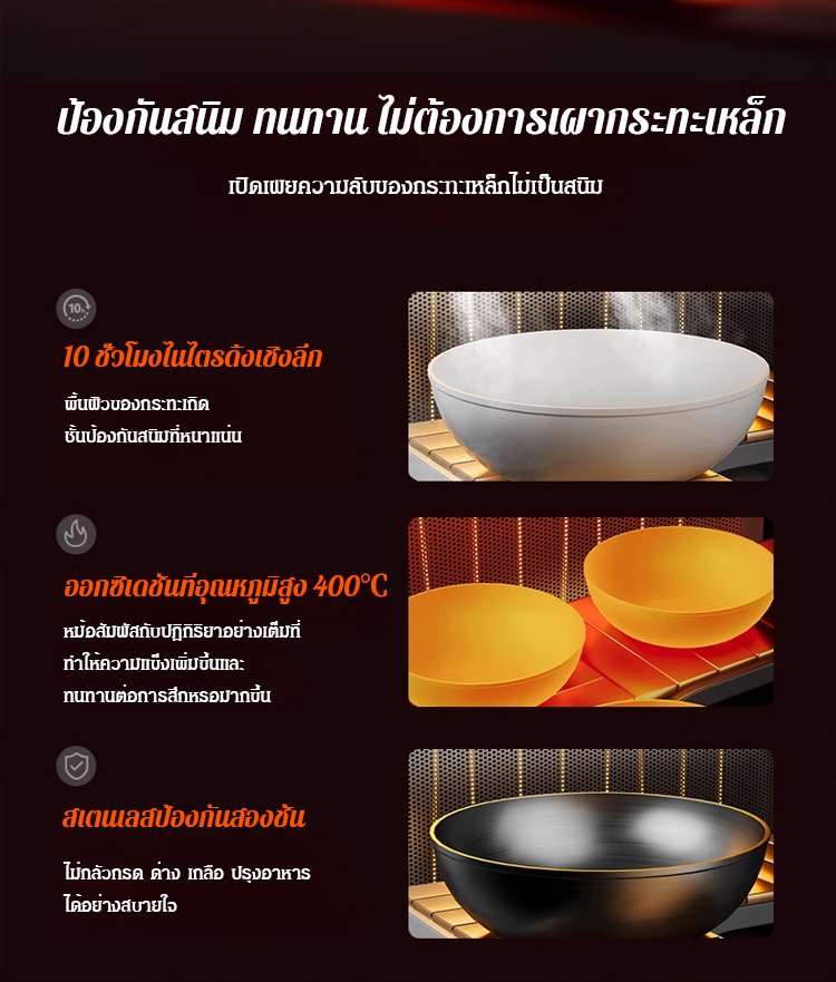 กระทะเหล็กหล่อลายค้อนทุบ ไม่มีชั้นเคลือบ ดีต่อสุขภาพ