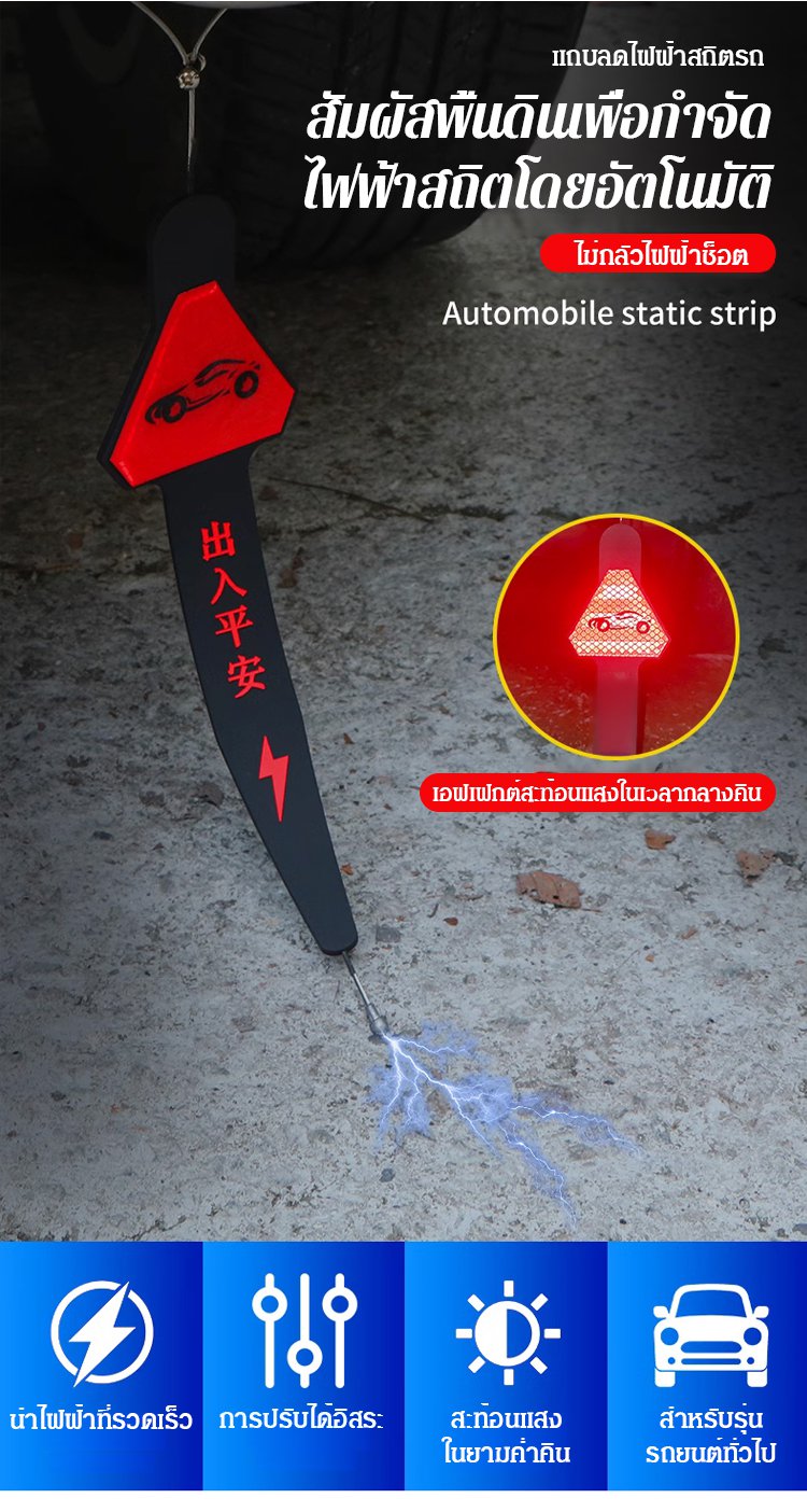 【รับประกันความปลอดภัยของรถยนต์!】สายคาดสะท้อนแสงกำจัดไฟฟ้าสถิตในรถยนต์